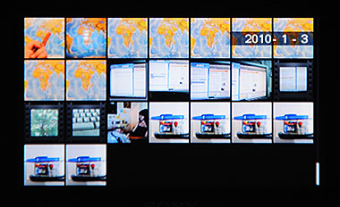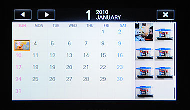 Режим реализован достаточно стандартным образом. Фотографии можно просматривать по одной, или по двадцать восемь. Благодаря сенсорному экрану снимки можно листать. ![]() ![]()