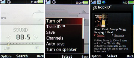 видео можно сохранить в общей галерее картинок. ![]() Раздел меню «Изображения» - мощный инструмент для управления вашей личной картинной галерей. Сюда входят такие пункты, как последние фотографии, общий альбом камеры, избранные фото и картинки. Альбом фотокамеры разработан с учетом того, что телефон входит в С-линейку, и его обладатель явно будет делать много снимков. Для каждого месяца создается свой отдельный список фотографий, интересующее вас фото при выборе будет слегка подсвечено. Картинки можно с помощью клавиш быстрого доступа отсылать другим абонентам, устанавливать как картинку контакта или как обои. ![]() Симпатично выглядит и интерфейс FM-радио с расширенным сервисом TrackID. Кто не сталкивался еще с этой приятной функцией - объясняем. Если по радио вы услышите неизвестный вам трек, который очень понравился, вы можете записать его кусочек и получить ответ, кто его исполняет. ![]() Дополнительно