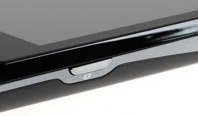 Теперь присмотримся к телефону поближе, повертим его в руках. Под дисплеем традиционно находим динамик, Датчик света расположился слева, справа - небольшой LED-индикатор. Три «ощутимые» клавиши Меню, Дом и Назад под дисплеем вполне приятны на ощупь, нажимаются мягко и плавно. Их вполне могли бы заменить модные нынче софт-клавиши, но на тот момент, когда разрабатывался дизайн этого гаджета, они не были таким уж трендом. В конце концов, найдётся немало людей, предпочитающих видеть на «теле» своего смартфона традиционные «человеческие» кнопки. ![]()