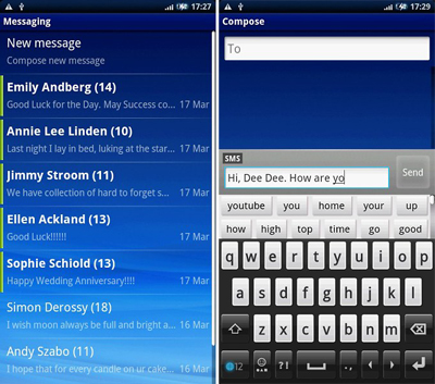 режиме разговора, до 415 часов в режиме ожидания Меню сообщений Xperia X10 с непривычки может показаться довольно неудобным, однако к нему быстро привыкаешь. Сообщения рассортированы не по папкам, а по номерам ваших контактов. Плюс блок «Новое сообщение». Если приноровиться, такой подход к хранению SMS кажется очень эргономичным. Конвертация SMS в MMS происходит автоматически при добавлении звукового файла или картинки. Кнопки виртуальной клавиатуры постарались сделать максимально комфортными и крупными, в жертву принесли рабочее пространство. Буквам на экране тесно. Однако при повороте экрана X10 превращается в мощную машину для месседжинга, соперничать с которой может разве что c хитовой Motorola Milestone. ![]() ![]()