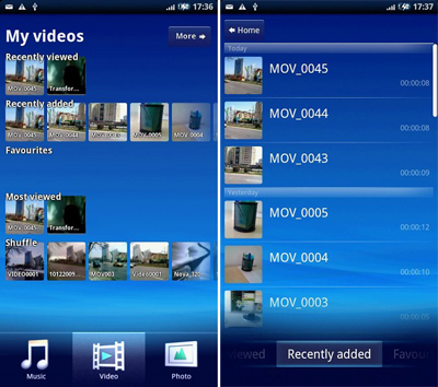 из Интернет-магазина Sony Ericsson. Что же касается блока «видео», то здесь взаимосвязь с сетевыми ресурсами не столь тесная, зато интерфейс гарантирует вам простой и удобный доступ к новым и самым любимым видеороликам. Ложка дёгтя: как и большинство «гуглофонов», XPERIA X10 не проигрывает ролики форматов DivX и XviD. Более того, если хранить клипы на карте памяти, такие файлы не будут появляться в списке. ![]()