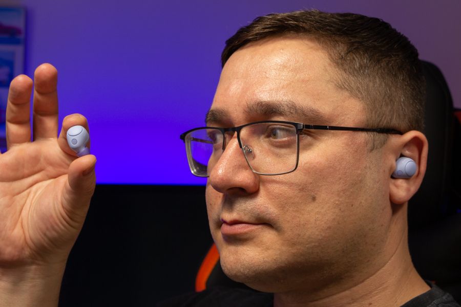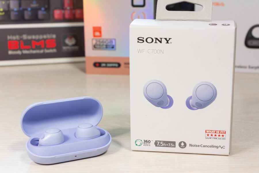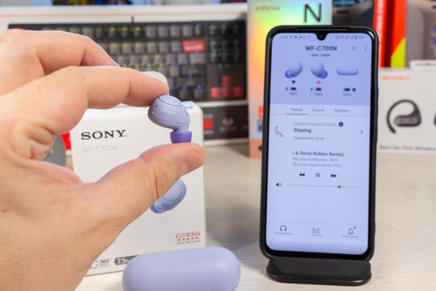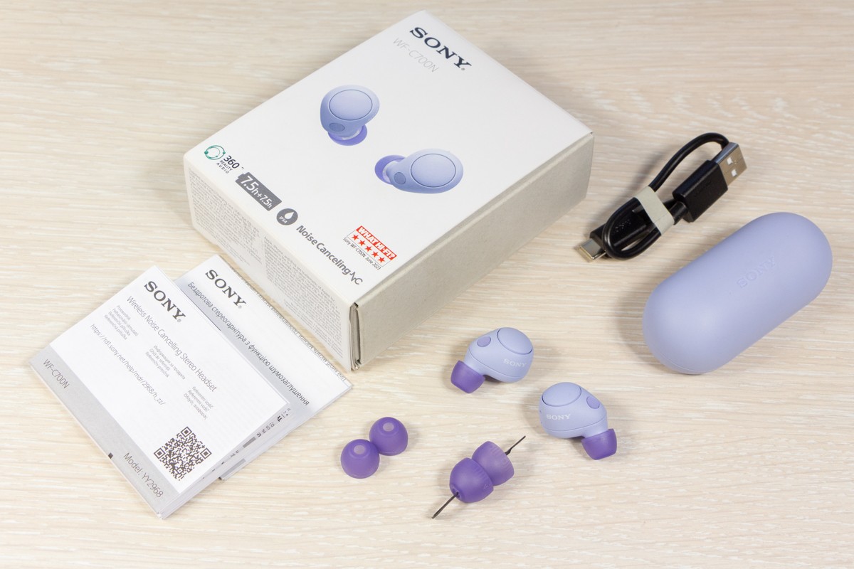 Огляд бездротових навушників Sony WF-C700N: з басами, красивими кольорами і ANCSony WF-C700N – це компактні бездротові навушники з функцією активного шумопоглинання, які представили у квітні 2023 року. Пройшов майже рік, але в Україні серед асортименту навушників Sony покупець не знайде аналогів за ціною та характеристиками, тож пристрій можна вважати актуальним. Мої враження, деталі по характеристиках та можливостям моделі WF-C700N розповідаю в огляді. Комплектація Окрім навушників і зарядного боксу, в комплект входить кабель USB-A - USB-C для зарядки, дві додаткові пари силіконових амбушюр і посібник користувача. Дизайн і Корпус Sony WF-C700N доступні в продажу в чорному, білому, м’ятному та лавандовому кольорах. У мене на огляді якраз останній, але особисто для себе обирав би між чорним та білим. Конструктивно маємо навушники-вкладиші, які щільно прилягають до вуха. Своє вухо вважаю середнього розміру, мені корпус зручний з урахуванням того, що обрав собі найменші амбушюри. Для управління роботою навушників використовується кнопка, вона не сенсорна. При натисканні прослуховується клік. Особисто мені фізичні кнопки на навушниках подобаються більше, адже з ними менше випадкових натискань. Серед матеріалів навушника переважає матовий пластик. Логотип Sony присутній на верхньому краї кожного навушника. Навушник легкий – 4,6 г, але при цьому батареї всередині вистачає до 10 годин роботи без ANC і до 7,5 годин з ANC. Ці цифри реальні, перевірив. Відразу уточню, що повна зарядка займає не більше 90 хв. Якщо покласти навушники в бокс на 15 хвилин, то вони набирають заряду не менше ніж на 1,5 години роботи. Бокс має продовгувату овальну форму, невеликий по габаритах, легкий і виконаний з тактильно приємного пластику. Економія на розмірах призвела до того, що батарея всередині боксу може лише один раз зарядити пару навушників з 0 до 100%. Для мене це незручно, адже я звик тиждень не підзаряджати бокс. На боксі присутній роз’єм USB-C для заряджання, індикатор та кнопка для запуску режиму спарювання/скидання навушників до заводських налаштувань. До збірки навушників зауваження відсутні. Пристрій має клас захисту IPX4, що означає стійкість до бризок. Управління Керувати роботою моделі Sony WF-C700N з кнопки дуже просто: