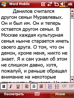 Возможности чтения книг у коммуникаторов оказались одинаковыми — на каждый из экранов умещается 12 строчек из одинаковых текстов (HTC Touch Pro — слева):