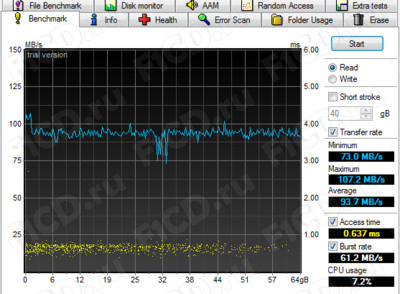 Несмотря на серьезный процессор, в 3D-тестах планшет получил низкую оценку. Используемый видеоадаптер не сможет обеспечить приемлемую играбельность в большей части современных игр. ![]() В этом планшете вместо жесткого диска используется твердотельный накопитель SSD объемом 64 Гбайт. Такое решение позволяет несколько снизить энергопотребление; скорость же SSD-накопителей обычно заметно выше HDD. В данном случае скорость была не рекордной, но и не слишком плохой. ![]() ![]() ![]() Производитель обещает до 4,5 часов работы от одной зарядки батареи. Видимо, эта цифра указана для режима с минимальной нагрузкой — в нашем тесте при проигрывании видеоролика Big Buck Bunny в разрешении 480p планшет продержался весьма скромные 2 часа 3 минуты. ![]() Заряжался ASUS EeeSlate B121 дольше — в течение 2 часов 36 минут. ![]() Для устройства, которое будет практически постоянно находиться в руках владельца, разогрев корпуса при нагрузке — очень важный параметр. Кому будет приятно работать с планшетом, прогретым до 40-50 градусов? Поэтому мы измерили температуру задней части планшета в девяти зонах.