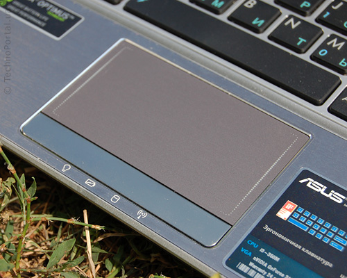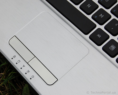 панель, имеет текстуру как у шлифованного алюминия. Тачпад лишен