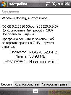 - Установленная операционная система: Microsoft Windows Mobile 6 Professional