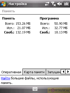 Как мы уже неоднократно говорили, одним из самых существенных недостатков ASUS P550 является малый размер встроенной памяти. В устройстве установлено всего 64 Мб оперативной памяти (RAM), из них, после первого запуска, доступно только 22.5Мб. Конечно, для повседневной работы с основными приложениями этого достаточно, но а наш взгляд пора бы уже производителям перестать издеваться над покупателями и начать оборудовать свои новинки достаточным размером памяти для одновременной работы с несколькими приложениями. Особых проблем в работе устройства при тестировании замечено не было, однако как мы уже сказали выше, переключаться между несколькими тяжелыми приложениями будет проблематично — возможны зависания и торможения в работе коммуникатора.