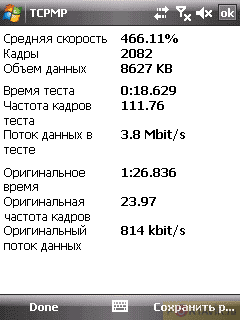 Мы провели тестирование ASUS P550 плеером TCPMP, который может показать, способен ли коммуникатор «потянуть» то или иное видео.