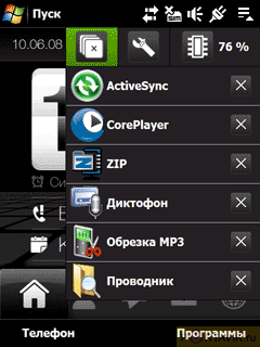 Диспетчер задач — управление запущенными программами с экрана «Сегодня» при помощи ниспадающего меню.