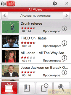 YouTube — программа для просмотра файлов популярного одноименного сайта. Работает как с GPRS, так и с Wi-Fi.