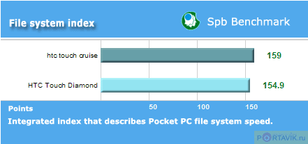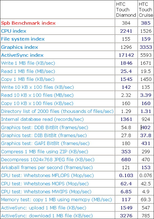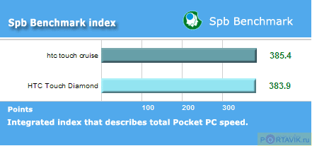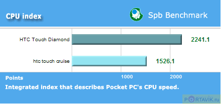 Оба устройства оснащены по «последнему писку моды». То есть, с производительностью проблем нет. На первый взгляд. В HTC установлен процессор Qualcomm MSM7201A с тактовой частотой 528 МГц. Объем оперативной памяти составляет 192 Мб, но пользователю доступно около 113 Мб. Большая часть ресурсов уходит на поддержание работоспособности оболочки TouchFLO 3D.