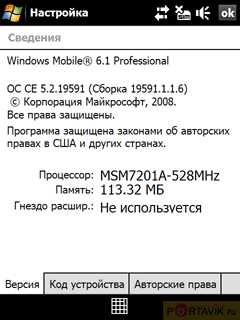 - Установленная операционная система: Windows Mobile 6.1 Professional