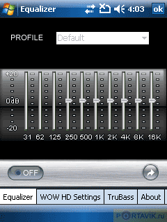 Equalizer — настройки музыкальных параметров, в том числе усиление низких частот (технология TruBass).