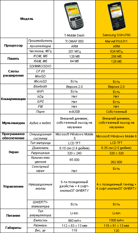 Это уже третье подобное устройство за последнее время в наших руках. Что поделать, если пользователи начала 21-го столетия «требуют» от производителей все больше девайсов с открытой QWERTY-клавиатурой и дисплеем, удобным для работы с документами и текстами. Посему, коммуникатор Samsung мы будем сравнивать сегодня с очень похожим по потребительским качествам смартфоном T-Mobile Dash. Итак, поехали!