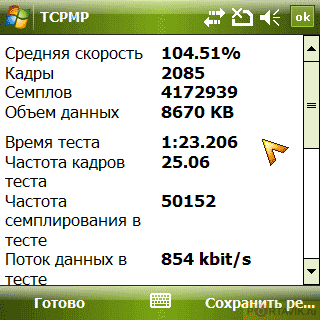 Как обычно, для проверки берем популярный TCPMP-плеер и проигрываем сначала оригинальный (672 x 288 пикселей), а затем конвертированный (320 x 240) ролик. Посмотрим, как процессор коммуникатора справится с такой задачей.