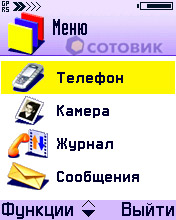 Функционально этот аппарат - улучшенный вариант нокии 3650, как я уже говорил. Если даже говорить о структуре меню - сименс не удержался, и прорисовал несколько папок в своем собственном стиле (в частности, на картинке ниже - Камера, Органайзер, Музыка, Игры, Прочее и Настройки - это не приложения, а папки). В чистом нокиевском симбиане этого нет. На самом деле, я нимало удивлен работой, проведенной по приведению интерфейса этого аппарата в приемлемый вид. Последние аппараты сименса как-то совсем не впечатляли художественными талантами разработчиков... Переключаемость запущенных приложений - стандартная для нокиевского симбиана: долгим удерживанием клавиши "Меню".