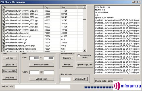 Несколько слов о программе. После распаковки Zip-файла, надо подключить телефон к ПК и запустить файл p2kman.exe. При этом компьютер станет находить ряд новых устройств. Для установки драйверов для них нужно прописывать путь в ту папку, куда была распакована программа. Установив все оборудование, программа переходит в рабочий режим. В левом окне (см. фото) отображается все, что есть в телефоне. Друге подробности установки и работы с p2kman можно найти в файле readme.txt. Считаем нашим долгом заявить, что ПО не относится к официальным, поэтому ответственность за его применение пользователь берет на себя. Лично у нас никаких особых проблем не возникло. Главное, зачем нужно следить - это не удалять незнакомые файлы. Они могут отвечать за жизненно важные функции телефона.