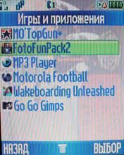 Говоря о возможностях камеры, нельзя не упомянуть о фоторедакторе - Java-приложении, с помощью которого над "фотками" можно хорошенько поиздеваться (см. фото). Меню во многом похоже на меню других Моторол (C650, C380, V220 и др.). Но есть и отличия, например, различные стили оформления меню.