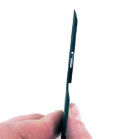 Крышка батарейного отсека снимается с трудом. Дело в том, что ее нужно сдвигать вниз, а зацепиться пальцу не за что, штатные насечки помогают несильно, вернее, вообще не помогают. Первое время мы зацепляли ногтем крышку, просовывая его в щель между крышкой и корпусом. Через некоторое время телефон стал открываться заметно легче, так что виртуозничать с ногтями стало необязательно - достаточно было посильнее надавить на крышку, чтобы создать высокую силу трения, и можно было сдвигать. Лучше всего это делать двумя руками. Если ладони влажные, то опять приходится возвращаться к старым методам. Но все это - мелочи жизни, которые можно с легкостью простить финнам, ведь крепится крышка изумительно надежно. На люфт и намека нет, то же самое можно сказать и о скрипах или иных проявлениях некачественной сборки. Крышка встает на свое место как влитая, и все благодаря салазочному механизму ее крепления. На металлической основе сделаны направляющие, по которым крышка проходит почти треть своей длины прежде чем встать на место (см. фото). Сама крышка сделана очень тонкой, чтобы по минимуму влиять на габариты смартфона.