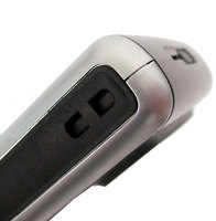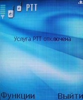 На левом торце - кнопка включения Push-To-Talk. Можете, конечно, понажимать ее, но много толку от этого не будет, так как данная услуга в России пока не предоставляется. Разве что "Билайн" в Москве анонсировал запуск PTT в тестовую эксплуатацию, но пока дальше пиар-акций со спасателями и таксистами дело не пошло. Обидно, что кроме как РТТ, эту кнопку ничему не назначить. А ведь это единственный внешний орган управления (не считая кнопки-выключателя). Хорошо еще, что обе софт-кнопки, расположенные над джойстиком, программируемые.
