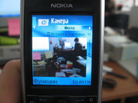 "Камера" - следующий пункт. Для быстрого запуска режима фотосъемки используется левая софт-кнопка. Надо сказать, что таков расклад по умолчанию, но пользователь может назначить софт-кнопке (как левой, так и правой) любую из 36 функций. Фиксация кадра осуществляется нажатием джойстика. Одновременно с этим нажатие "Вверх/вниз" приближает/удаляет объекты, а "Влево/вправо" - изменяет режим (фото/видео). К тому же цифра "1" активирует ночной режим. Порадовало то, что фиксация кадра происходит почти одновременно с нажатием джойстика, что исключает получение смазанного изображения.
