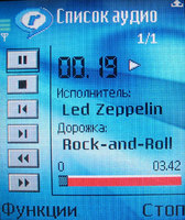 Отдельным пунктом главного меню сделан проигрыватель RealPlayer. Достоинство его в том, что он воспроизводит такие форматы как 3GP, MPEG-4, H.263, AMR (диктофон), RealMedia (Real Video and Real Audio), MP3, AAC и др. Минус - в том, что МР3 он воспроизводит в монофоническом режиме с плохим качеством. То есть, как МР3-плеером Nokia 3230 не воспользоваться.