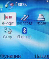 Вместе со "Службой присутствия", в новинке есть еще одна функция, не поддерживаемая пока российскими операторами: "Местоположение". Эта программа по данным, получаемым от оператора, может определять координаты абонента и даже рисовать точку на карте. В принципе, услуга определения местоположения сейчас доступна у ряда российских операторов, но с программой это никак не связано. В пункте "Связь" есть ИК-порт (его можно только включить, выключается он сам), диспетчер соединений, модем, синхронизация с Lifeblog - сервисом Nokia, который предоставляется на сайте nokia.com и представляет собой внешнее место для хранения фотографий. Последним пунктом следует Bluetooth. Проблем с ним у нас не возникло. Разве что скорость загрузки файлов не достаточно высока - около 24 Кбайт/с, если речь идет о едином файле (мы закачивали МР3).