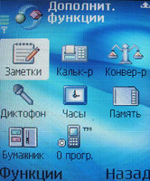В пункте "Дополнительные функции" находятся такие приложения как календарь, бумажник и заметки, они не претерпели никаких изменений. Калькулятор порадовал дружелюбным интерфейсом и функциями памяти. А вот диктофон огорчил - всего 1 минута отводится для фрагмента, это при том, что памяти, особенно на флеш-карте, хоть отбавляй. Так что лекцию на Nokia 3230 не записать. Кстати, телефонный разговор диктофоном записать можно, но для этого надо зайти в главное меню и активировать запись, что не очень удобно. Любопытно, что если прослушать запись во время телефонного разговора, то ваш собеседник ее тоже услышит. Таким образом можно подшутить над товарищем, например, заранее записать женский голос и поставить его во время телефонной беседы. В общем, можно придумать массу применений для этой опции.