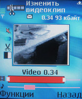 "Справка" - здесь можно получить информацию о том, какие функции за что отвечают. Своеобразная инструкция, встроенная в телефон. Надо сказать, что в каждом пункте меню есть "филиал" справки, отвечающий за данный пункт. Можно "не отходя от кассы" узнать, для чего предназначен тот или иной пункт, достаточно остановиться на нем курсором. "Видеоредактор" - новая функция, предназначенная для обработки видеофайлов. Здесь можно вырезать из клипов фрагменты, склеивать несколько клипов в одно целое, параллельно редактировать звуковое сопровождение (вырезать, добавлять, перемещать относительно видеофайла вперед/назад). Картинку можно менять на черно-белую, а также замедлять скорость воспроизведения видеофайла.