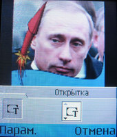 Что касается видео, то максимальная длина записываемого фрагмента - в зависимости от объема свободной памяти (с картой 32 Мб это почти час на максимальном разрешении). Это большой прогресс, так как, например, в Nokia 7610 ограничение - 10 минут вне зависимости от объема свободной памяти. К тому же можно выставить короткий интервал в 10 секунд, очевидно для использования в MMS. Разрешение видеокадра может быть 176х144 или 128х96 точек. Как и в случае с фотографиями, у видеороликов можно изменить имя по умолчанию и место хранения файлов. Теперь о том, чего нет. Нет возможности изменить степень Jpg-сжатия для выбранного разрешения. По нашему мнению, при мегапиксельной съемке оно среднее между теми, какие обычно называют высоким и низким. Качество в общем неплохое, но искажения, особенно на мелких элементах, видны. С таким сжатием мегапиксельная картинка "весит" примерно 150-250 Кб. Нет мультисъемки ни в каком виде, оформительских режимов (черно-белый, сепия и т.п.), рамок. Что уж там говорить о панорамной съемке, когда несколько фото автоматически склеиваются в одно - естественно, ее тоже нет. Очень жаль, что сильная аппаратная сторона не поддержана соответствующим софтом. Впрочем, кое-какие эффекты все-таки можно делать с фотографиями в специальной Java-программе "Фоторедактор" (читайте ниже)