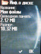 О камере можно сказать следующее: кроме как высоким разрешением, она ничем не отличается - показатели качества в районе среднего. У Nokia 7610 снимки нам показались лучше. К тому же в нашем экземпляре светочувствительность камеры была почему-то настолько низкой, что солнечные дни на фото воспринимаются как сумрак (см. фото). Приходилось вручную добавлять яркость. Кстати, если в телефоне имеется сменная карта памяти, то фотографии по умолчанию сохраняются на нее, в папку "Картинки". "Сообщения"Здесь кроме текстовых посланий собраны также MMS и Email-клиент. С одной стороны, функции сделаны без "наворотов", с другой - все просто и интуитивно понятно. "Органайзер"Здесь есть все, что необходимо: календарь, список встреч, задания, заметки, часовые пояса и диктофон, у которого максимальная длительность зависит от свободной памяти и при покупке аппарата составляет более 2 часов. Жаль, что телефонный разговор записать нельзя. "Еще"Здесь находится: SIM-меню, будильник (можно выставить на любые дни с любой мелодией), калькулятор (есть простая и расширенная версия, последняя умеет выделять корни, а также возводить в квадрат, считать обратную величину, оперировать с памятью и т.п.), конвертер величин, секундомер, таймер, файл-менеджер, синхронизатор данных по WAP и запись звука. От пункта "диктофон" в органайзере запись звука ничем не отличается. Но файлы, записанные этими программами между собой не пересекаются. То есть, у заметок свой список файлов, а у диктофона - свой. Зачем так сделано - непонятно. "Мои файлы"По сути, обычный файл-менеджер. Здесь можно сортировать файлы по дате/типу/имени, перемещать, удалять, вставлять, переименовывать, искать (по дате/типу/имени), изменять вид показа (список или предварительный просмотр) и т.п. Здесь же можно посмотреть общее и свободное место на диске (встроенная память - 10,32 Мб). "Настройки"Тут все как обычно, пожалуй, подробно на этом пункте останавливаться не будем.