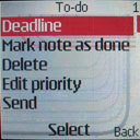 Диктофон может записывать фрагменты длительностью до 5 минут, что не может не радовать: в предыдущих телефонах 40-й платформы, в том числе и в Nokia 6230, длительность ограничена тремя минутами. Число файлов зависит лишь от свободной памяти. Фиксировать можно в том числе и телефонный разговор. Диктофонные записи можно применять как сигналы вызова и (внимание!) как сигналы пришедшего СМС. В пункте "Профили" все как обычно. Кроме всего прочего, можно выставлять время срабатывания той лили иной настройки. К примеру, на время сна или совещания можно установить "Беззвучный" профиль, который после окончания мероприятия автоматически переключится на обычный.