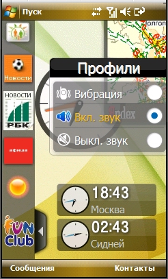 немного видоизмененный интерфейс Windows Mobile, хороший сенсорный