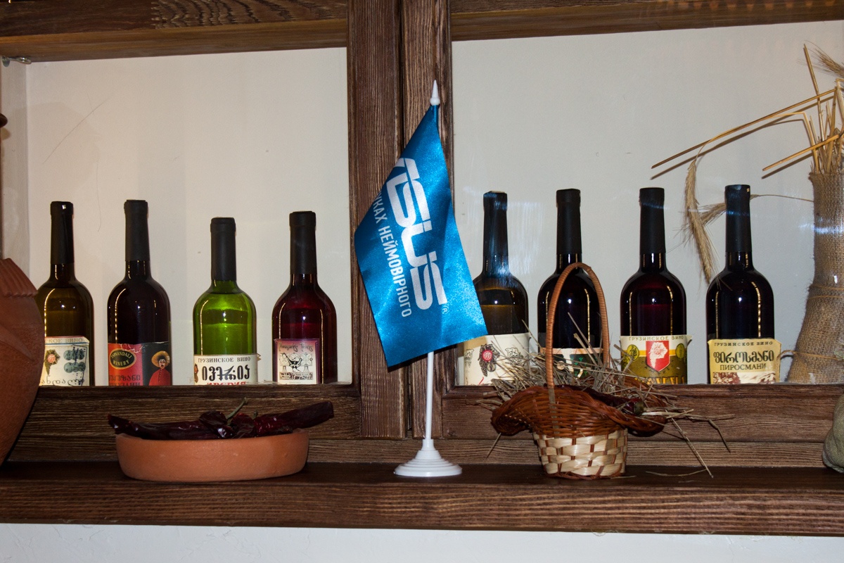 EcologyBY: Флаг Asus на фоне батареи алкогольных бутылок :mrgreen: