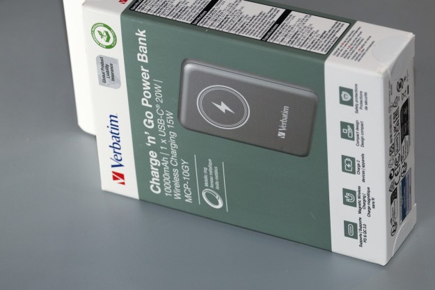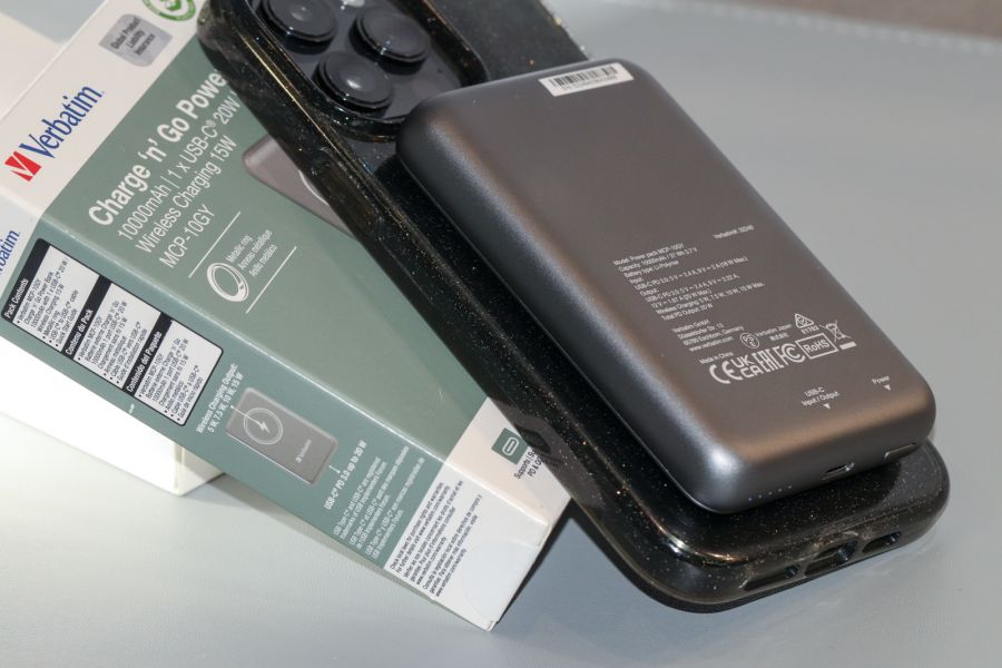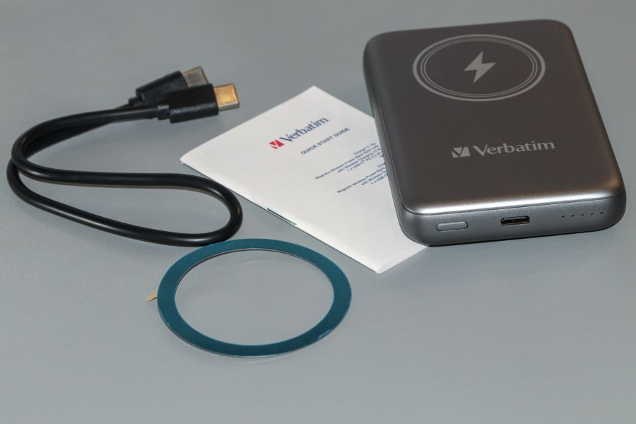 Verbatim Charge 'n' Go (MCP-10GY) – металевий повербанк з магнітною зарядкоюVerbatim Charge 'n' Go (MCP-10GY) – цікава модель бездротового повербанка на 15Вт з майже повністю металевим корпусом, дійсно гарним дизайном та 20Вт дротовою зарядкою. Про все це й не лише піде мова далі в огляді. То ж чому ми радимо саме цю модель!? Упаковка та комплект поставки Та давайте про все по черзі. Користувач отримає виріб в відносно компактній картонній коробці з дизайном у фірмовій стилістиці виробника. Останній – це поєднання молочного та зеленого відтінків, деталізованої ілюстрації виробу та купи різноманітних даних щодо особливостей та можливостей моделі. Нижче на фото графічна деталізація сказаного. Ви вивчайте, а ми поки йдемо розпаковуватися. Всередині маємо ущільнювач, також картонний. На ньому безпосередньо сам повербанк - Verbatim Charge 'n' Go (MCP-10GY). Під ним ще один ущільнювач, в якому «сховали» металеве кільце (за його доцільність тут поговоримо в окремому розділі). Не забули й за кабель type-C для підзарядки як повербанка, так і споживачів, що до нього підключені + звісно ж, документацію. Технічні характеристики MCP-10GY