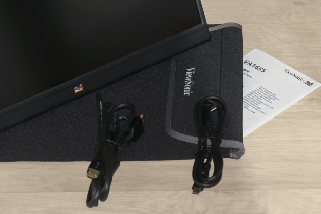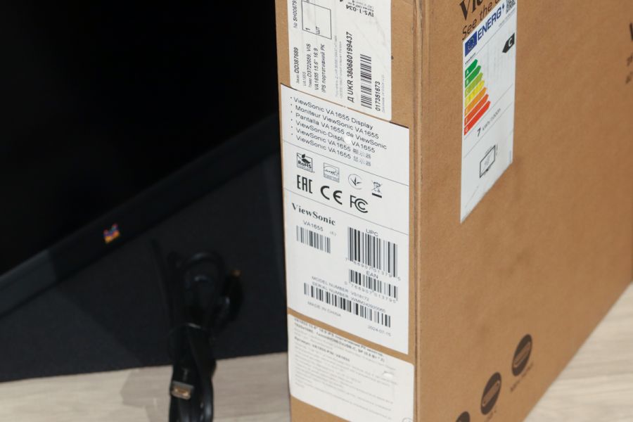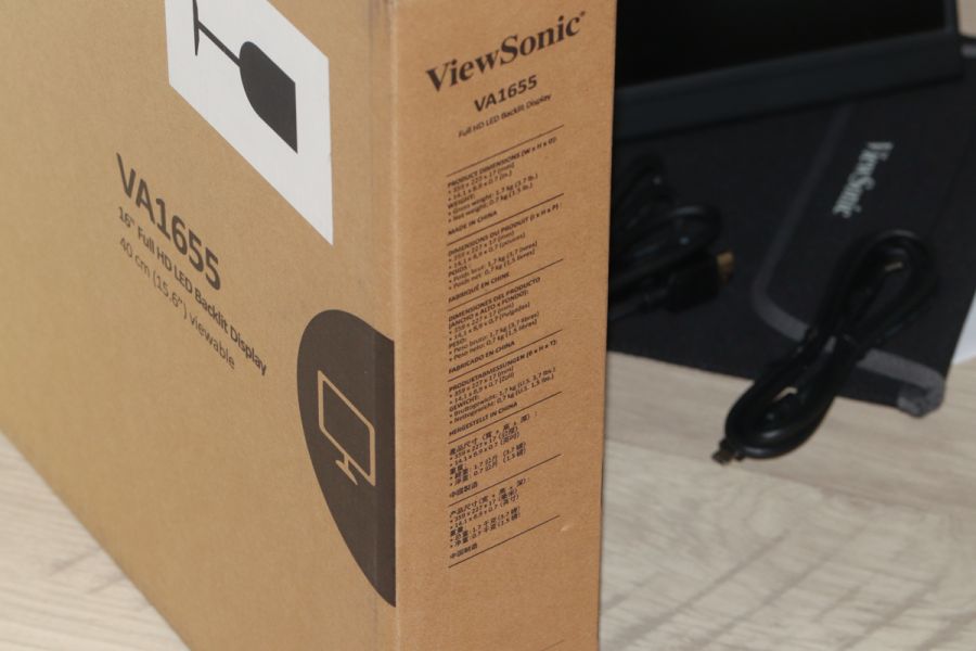 Огляд ViewSonic VA1655 – монітор, що працює від повербанкаА ще він достатньо компактний для своїх 16 дюймів, його можна носити в рюкзаку, підключати не лише до ПК/ноутбуків, але й MAC, використовувати в горизонтальній та вертикальній розгортці плюс багато ін. Цікаво, чи не так? Тоді радимо дочитати цей огляд до кінця. Упаковка та комплект поставки Але давайте про все по черзі. Користувач отримає дану модель в досить компактній коробці з картону повторної переробки, що, звісно ж, приємно. В дизайні упаковки виробник – прибічник стриманості, майже повна відсутність яскравих наліпок або ж інших примітних елементів. З того, що цікаво – наліпки з різноманітними технічними даними та детальний перелік характеристик. Особисто я ознайомився і вам раджу зробити те саме. Всередині коробки користувача чекають наступні речі: