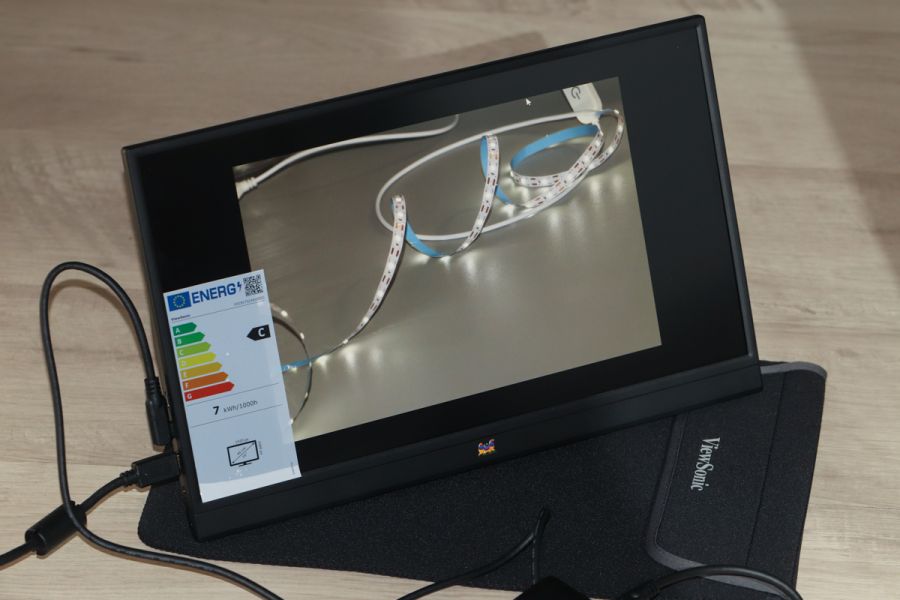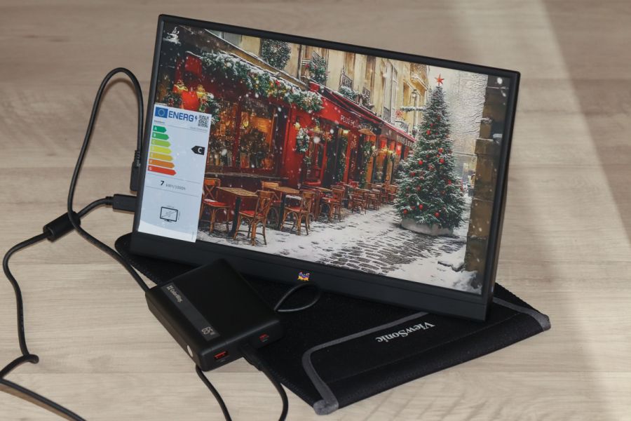 Адаптер живлення монітора в «штатній» комплектації не передбачений. На сторінці продукту вказується, що для роботи потрібен адаптер живлення. Підозрюю, що мова взагалі про джерело, а не виключно мережевий адаптер, адже одна з ключових переваг, як пам’ятаємо, саме незалежність від електричної розетки. Що ж, під час тестування я підключав ViewSonic VA1655 до ColorWay CW-PB200LPA3BK-PDD, з оглядом якого познайомлю наших читачів незабаром, і отриманими результатами лишився задоволений. Однак до підключення ми ще повернемося. Ключові технічні характеристики