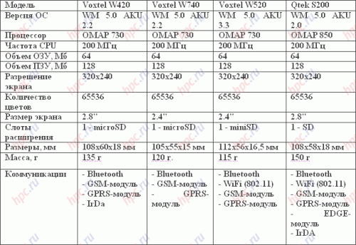 Разработчиком Voxtel W520 является компания TFW, известная нам по предыдущим моделям, выпущенным под брендом Voxtel. За основу коммуникатора был взят хорошо знакомый и многократно проверенный процессор OMAP 730 с тактовой частотой 200 МГц, посему чудес производительности от W520 ждать не стоит. Существенный плюс этого «камня» – низкое энергопотребление и, как следствие, хорошее время автономной работы, но о результатах тестов поговорим немного ниже. Вообще, что касается аппаратной начинки, новинка практически полностью повторяет предыдущие модели Voxtel, характеристики которых можно найти в приведенной таблице. Также для наглядности мы включили в сравнение одного из героев прошлого года – компактный хит Qtek S200, схожий с W520 по характеристикам. Забегая вперед, можно сказать, что наш герой унаследовал все лучшее от своих предшественников, и, что немаловажно, порадовал новыми для Voxtel решениями. В общем, смотрите и сравнивайте: