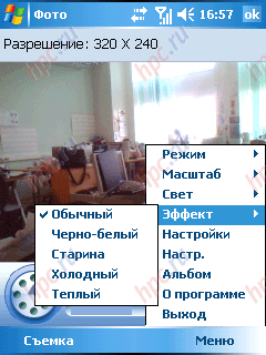 Также предусмотрена возможность установить яркость, насыщенность и контрастность снимка. Разрешение фото можно выбирать в достаточно широком диапазоне: 160x120, 176x144, 320x240, 352x288, 640x480, 1280x960 и 1600x1200.