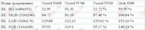 Как показали тесты, герой нашего обзора по производительности превосходит предыдущие модели Voxtel, но немного не дотягивает до Qtek S200. Как и следовало ожидать, чудес быстродействия W520 не продемонстрировал. Если отвлечься от цифр и описать работоспособность устройства с точки зрения пользователя, можно сказать, что с основными задачами машинка справляется хорошо. Навигация по меню осуществляется мгновенно, для открытия стандартных офисных приложений коммуникатору требуется около одной секунды. Для оценки качества воспроизведения видео мы использовали хорошо знакомый нашим читателям плеер TCPMP (The Core Pocket Media Player) версии 0.72RC1. Напомним лишь, что за норму принято брать результат 120%. Тестовые ролики сделаны в наиболее популярных разрешениях и закодированы наиболее распространенными кодеками DivX и XviD. Полученный данные приведены в таблице.