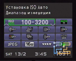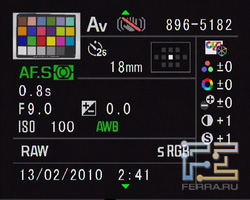Справа находится только лишь разъём подключения проводного пульта дистанционного управления и слот установки карт памяти. Экран и интерфейсВ камере установлен трёхдюймовый дисплей с разрешением 912 000 точек, что является отличным показателем даже по современным меркам. Конечно, смотреть на картинку без режущего взгляд зерна приятно, но важнее другое. Прежде всего, похвалы достойны углы обзора, которые огромны в обеих плоскостях, и это при том, что используется не OLED, а обыкновенная TFT матрица. Но и это ещё не все достоинства дисплея, ведь есть и огромный запас яркости, и при падении прямых солнечных лучей компоновать кадр и работать с меню вполне комфортно, да и цветопередача на весьма неплохом уровне. В общем, дисплей хорош. Структура меню привычна для зеркалок Pentax, поэтому пользователям продукции данной компании привыкать не приходится, да и новичкам разобраться тут проще простого, ведь меню хорошо проработано и интуитивно понятно. Недостаток у интерфейса камеры фактически один — сглаживание шрифтов могло бы быть и получше. Ниже для возможности ознакомления с интерфейсом камеры приведено несколько снимков экрана.