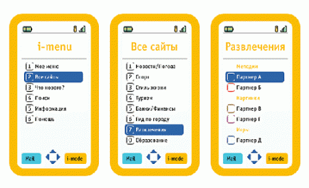 Для использования i-mode необходима поддержка этого сервиса со стороны вашего провайдера сотовой связи.