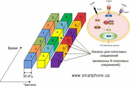 Стандарт связи D-AMPS основан на аналогово – цифровом преобразовании сигнала голосового потока, это дает возможность использования алгоритмов безопасного доступа, а так же можно внедрять новые сервисы и, что важно, позволяет наиболее эффективно использовать выделенные частоты. Этот стандарт, как и предыдущий, задействует каналы по30 кГц в диапазонах 824-849 МГц и 869-894 МГц.